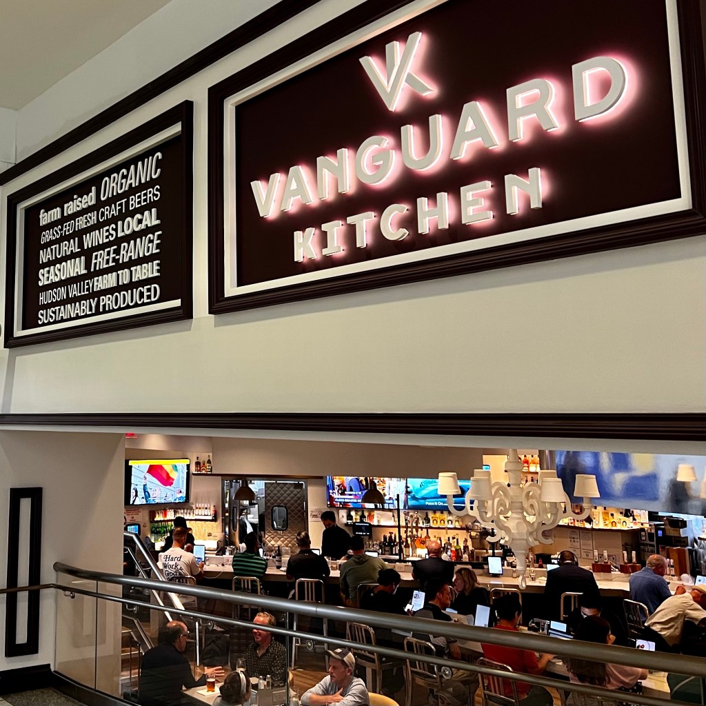The wait staff literally only delivers your food. Everything is done online and you pay (and tip) before you get the food delivered. It’s a drive-through on steroids. Four hours give you some diverse perspectives of this restaurant/hell of the future. Some people next to me at the Vanguard Kitchen‘s bar comment on the efficiency of the process, only to realize that they made a mistake in ordering and now need to talk to a human to fix it. Others hate it as they apparently like to talk to people to order. My order – bound to the seat‘s QR code where I am sitting – goes through without a hitch and infer an immediate notification via text. Not so my neighbor‘s. Her‘s is stuck and loading.