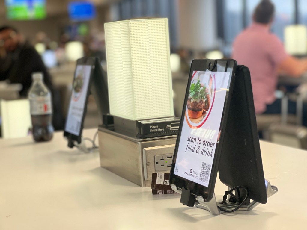 Newarks Terminal C is essentially a bar‘s equivalent of a US strip mall – a set of bars and restaurants loosely connected by walk ways and places to park, um, sit. It is also a zoo today due to weather issues in the east. Why a connecting flight vs. the direct flight to Frankfurt? Well, about $1000 less expense. And who would want to miss out to be in a restaurant of the future, or hell, depending on your perspective.