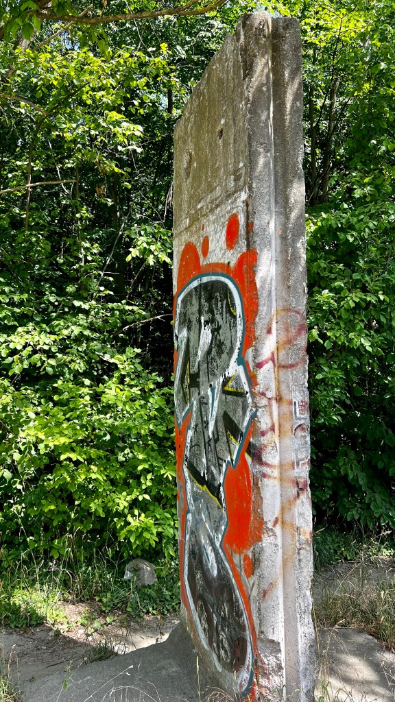 I am meeting a childhood friend who still lives in my street for a four mile morning walk to catch up. Lichterfelde, the part of Berlin in which I grew up with, gives my fairytale vibes of “Dornröschen” – “Sleeping Beauty.” Everything looks like it has been preserved but grown over with trees and nature. Especially, and always most amazing to me, the area where the wall used to be, is grown over by a forest. They left a piece of the original in walking distance from the house I grew up: