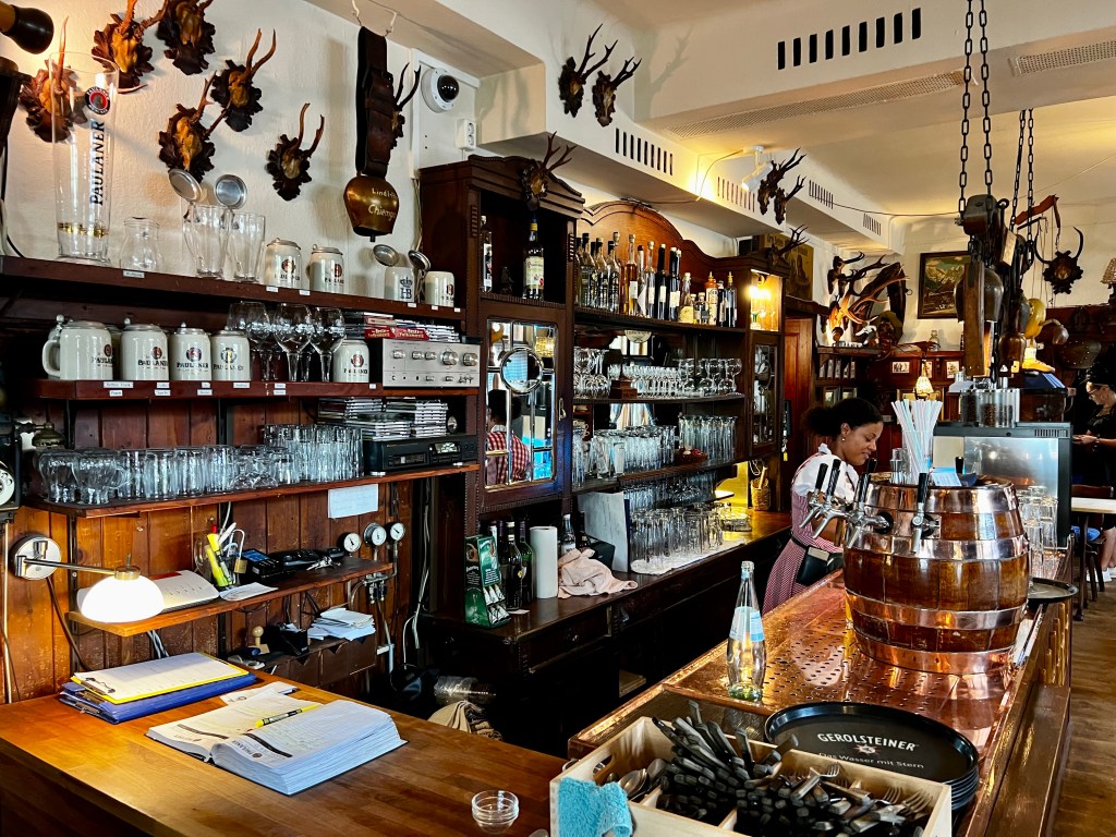 The day peaked at 95F – ouch – so we replace lunch with some light fruit and have dinner at „Weißes Rössl,“ not at the Wolfgangsee, but in Lichterfelde. I am refreshed after a brief 1.5 h power nap and my brother and I are planning the night. We decide to takeout easy and save the cocktail bar hopping for another night.