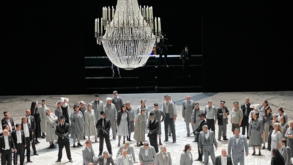 Reading up more about it, they must have cut the ballet, that takes up 40 minutes. Before starting, we are told that 21 (!) members of the chorus are sick, but that the rest will do their best and we will be fine. At times I am wondering where that other 21 would have gone. I snuck a pic in the second act (sorry) and the chorus was great as is.