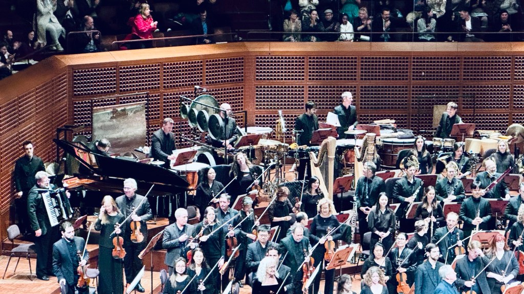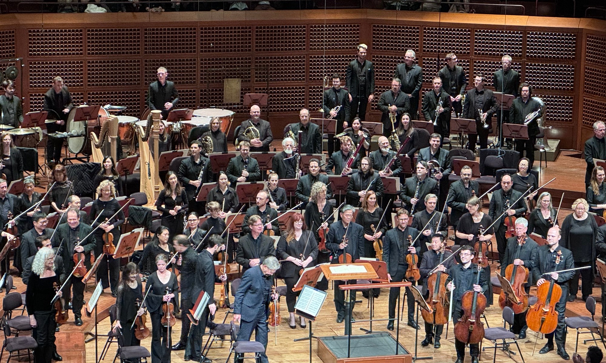 Unsuk Chin’s piece started so rhythmic that we thought one of the trombonists had dropped his silender. Twice. The rhythm section in the orchestra was distractingly diverse, including a piano that was only used open for percussion.