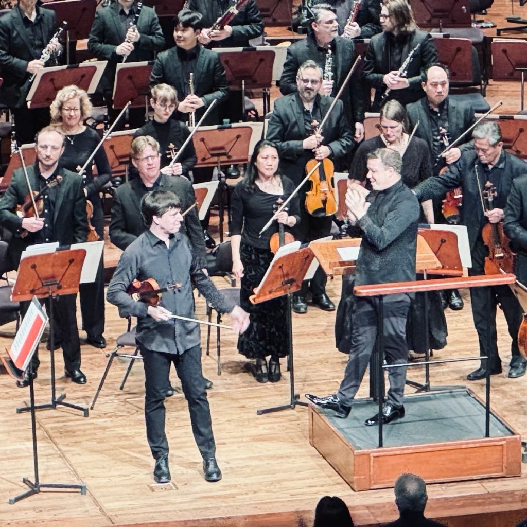 Rebecca Wishnia wrote a great review here titled “Joshua Bell and SF Symphony Are Otherworldly.” The program we saw included Unsuk Chin’s “Alaraph ‘Ritus des Herzschlags'” (Alaraph, ritual of the heartbeat) as a United States premiere, Henri Vieuxtemps’s Violin Concerto No. 5 featuring Joshua Bell as soloist and for a second act Kevin Puts’s “Earth” from “The Elements” suite that was commissioned by Joshua Bell and as closing piece Claude Debussy’s “La mer” showcasing Bancroft and the San Francisco orchestra.