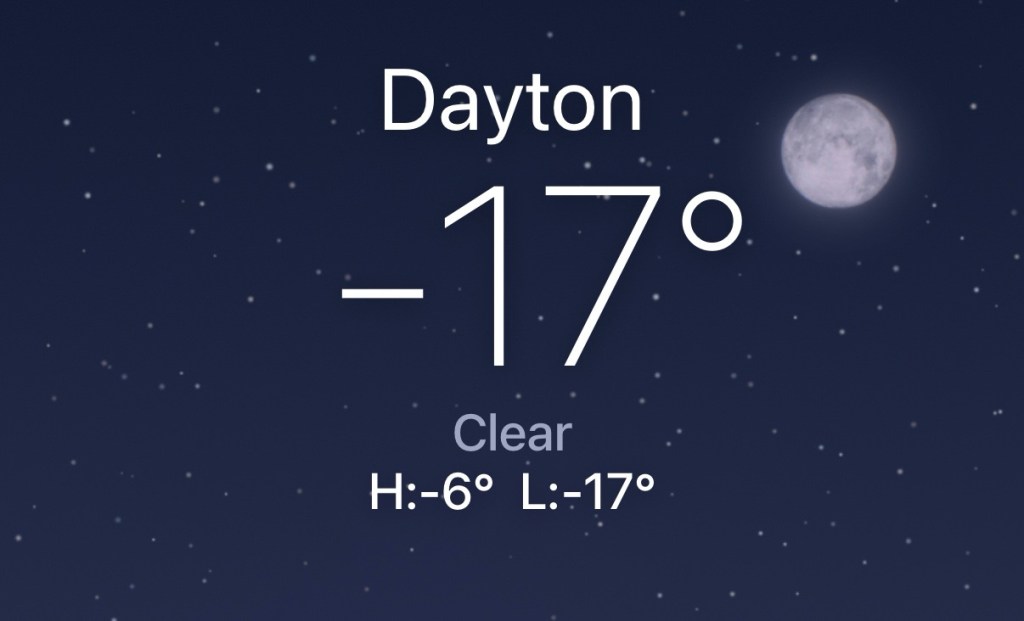 So, Dayton, huh? Never been there. It will be fun. Checked the temperature the night before departure: